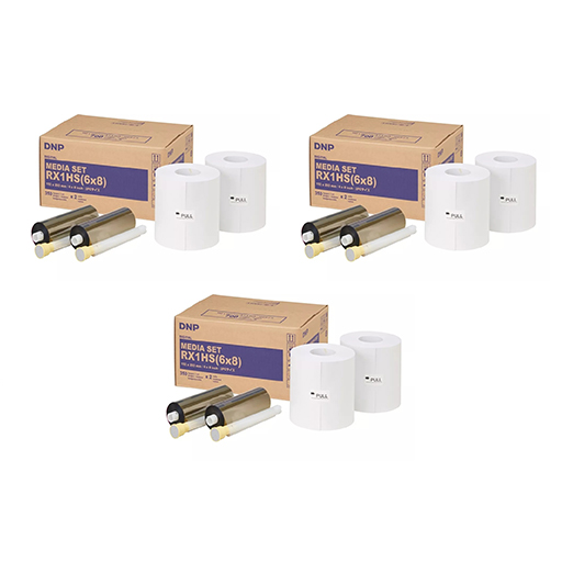 Box convenienza composto da 3 kit originali DNP DS-RX1, ciascuno con carta fotografica e ribbon, progettati per stampanti DNP DS-RX1 / DS-RX1HS. Ideale per chi stampa grandi quantità di fotografie con colori vividi, dettagli nitidi e durata garantita.